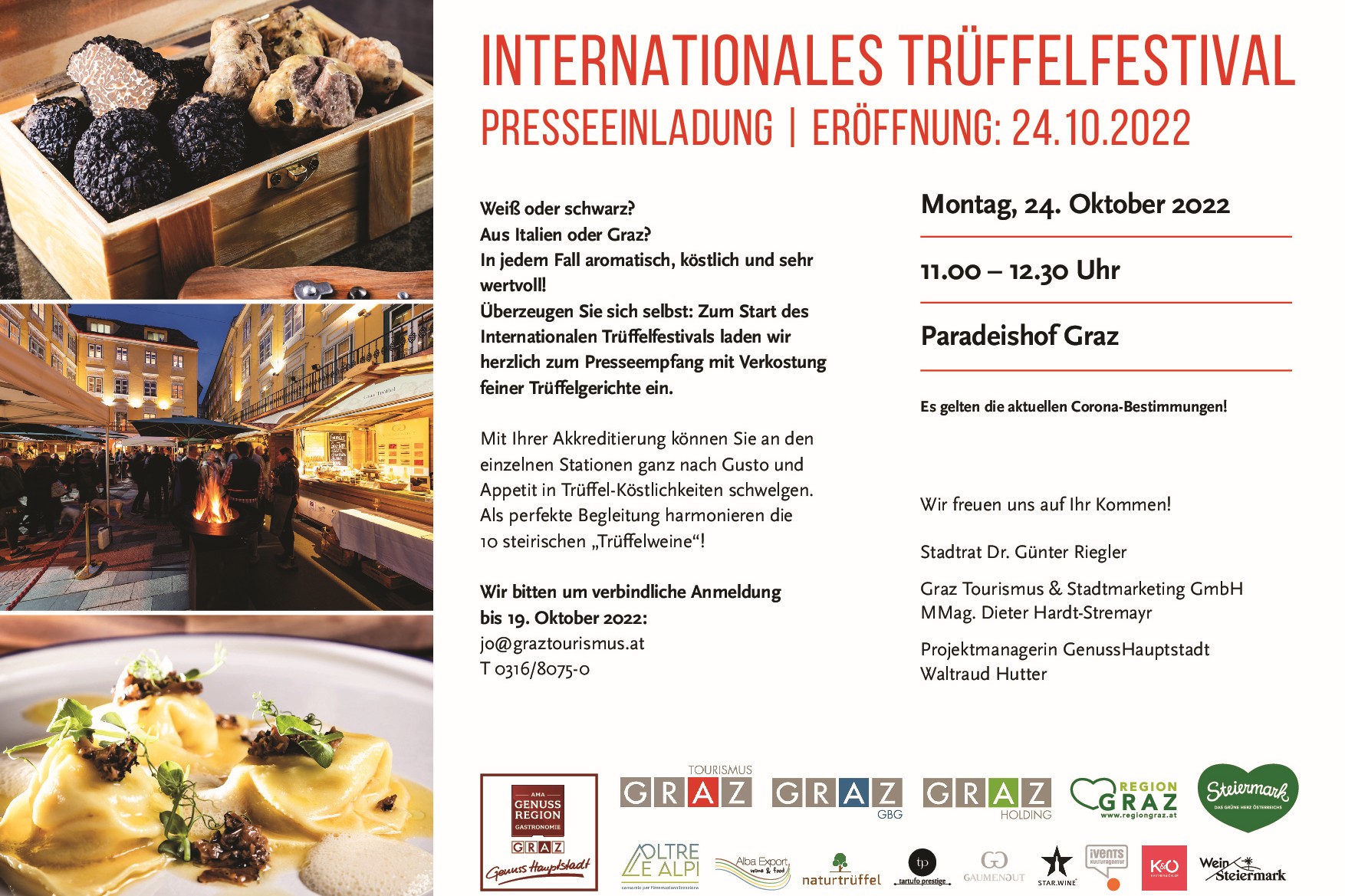 Die GenussHauptstadt Graz lädt Sie herzlich zur Eröffnung des diesjährigen Trüffelfestivals ein.