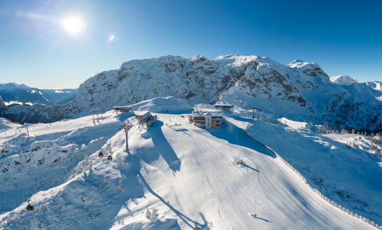Das Winter-Panoramabild von perfekt präparierten Weitpisten läutet den offiziellen Saisonstart in Kärntens größtem Skigebiet – dem Nassfeld am 7.12.2022 ein.