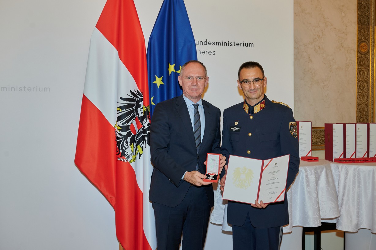 Rund 90 professionell ausgebildete Bedienstete sorgen in der Steiermark aktuell dafür, dass Anrufe von hilfesuchenden Menschen rund um die Uhr bearbeitet und daraus resultierende Einsätze effizient disponiert werden. Für ihr Engagement, auch bei der Umsetzung zu Beginn des Projektes „Leitstelle NEU“, wurde die steirische Polizei vor wenigen Tagen von Vertretern des Bundesministeriums für Inneres (BMI) geehrt. Zudem erhielt Oberstleutnant Daniel Huber als Leiter der steirischen LLZ erst kürzlich von Innenminister Gerhard Karner das „Silberne Ehrenzeichen für Verdienstzeichen um die Republik Österreich“. Der erfahrene Offizier war an der bundesweiten und erfolgreichen Etablierung des ELKOS wesentlich beteiligt.