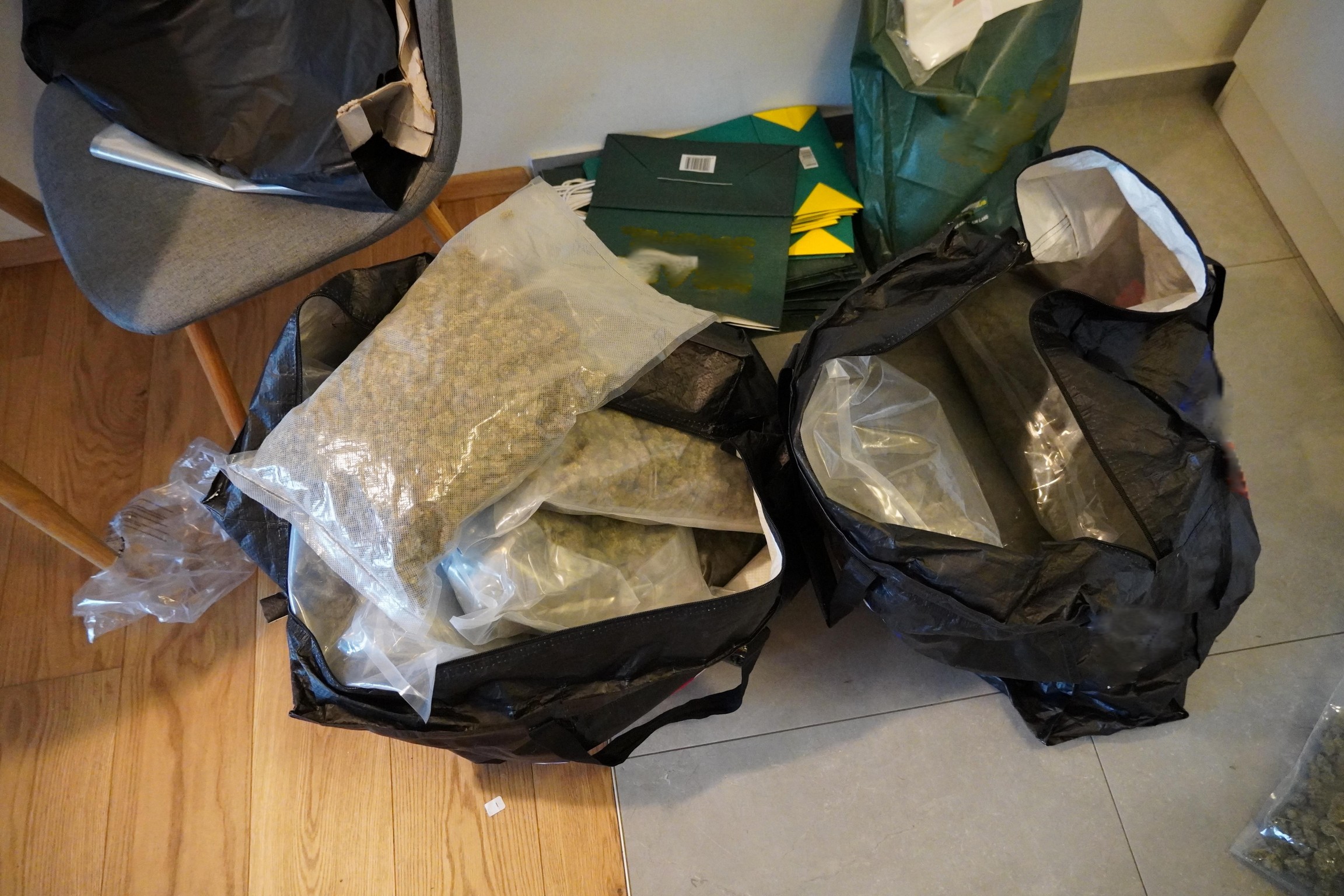 In der „Bunkerwohnung“ stellten Ermittler in der Folge rund elf Kilogramm Cannabiskraut, diverses Verpackungsmaterial, mehrere Sturmhauben sowie größere Mengen an Bargeld sicher (siehe Bilder). Auch teils verbotene Waffen – wie beispielsweise Teleskopschlagstöcke, Springmesser, Elektroschocker, einen Schlagring oder Schreckschusspistolen samt Munition – fanden Polizisten in der Wohnung vor. Im Verlauf der Ermittlungen wurden auch die Fahrzeuge (Mercedes Benz) von zwei Hauptverdächtigen sichergestellt und beschlagnahmt.