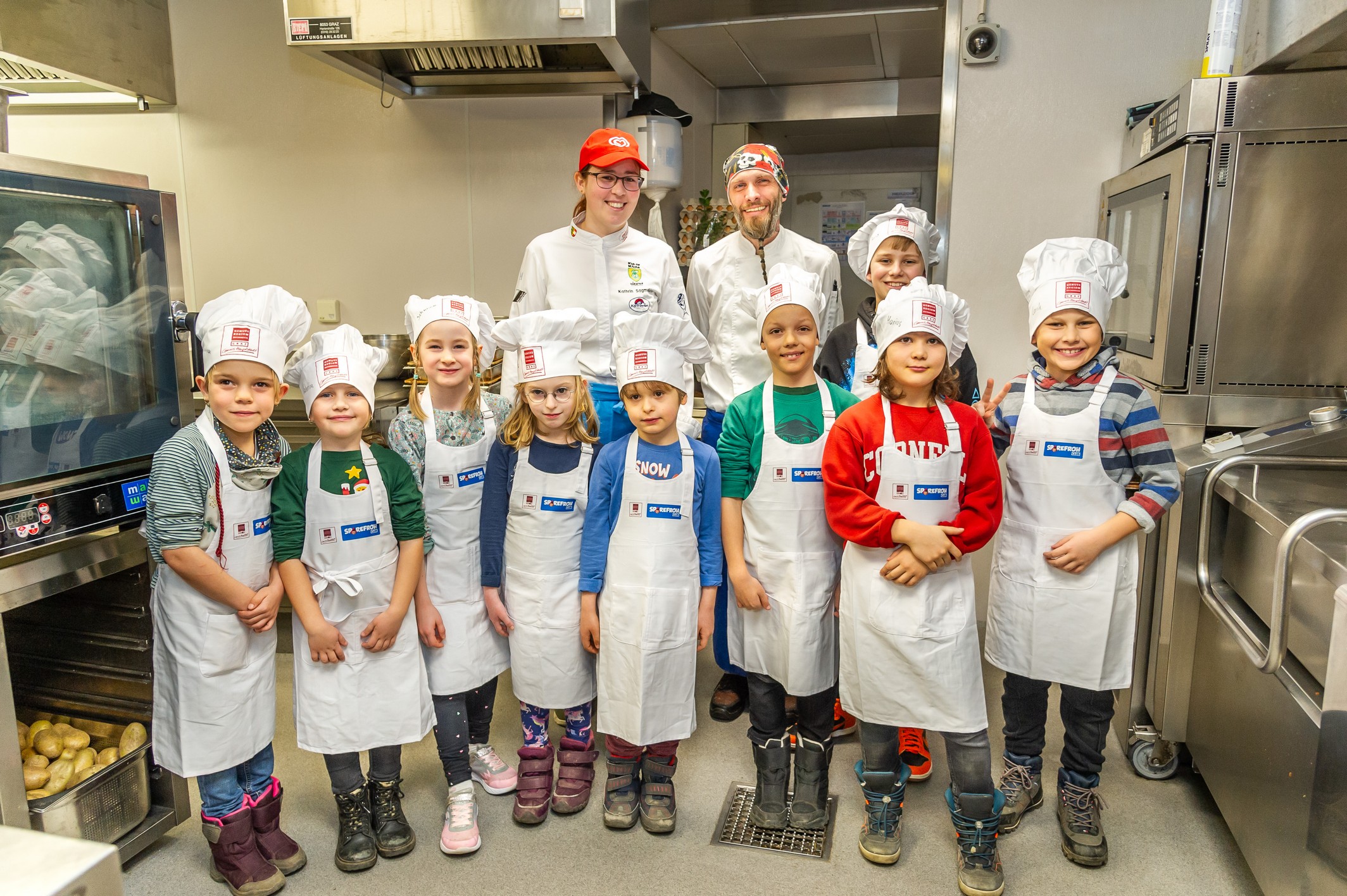 Inklusive: Qualifizierte Betreuung durch die GenussHaupstadt Köche, Kochzutaten, 3-Gänge-Menü, Getränke für die Kinder, Kochhaube, Kochschürze, Kochlöffel, eine Urkunde, das Rezept und eine Sammelmappe für die schönsten Erinnerungen.