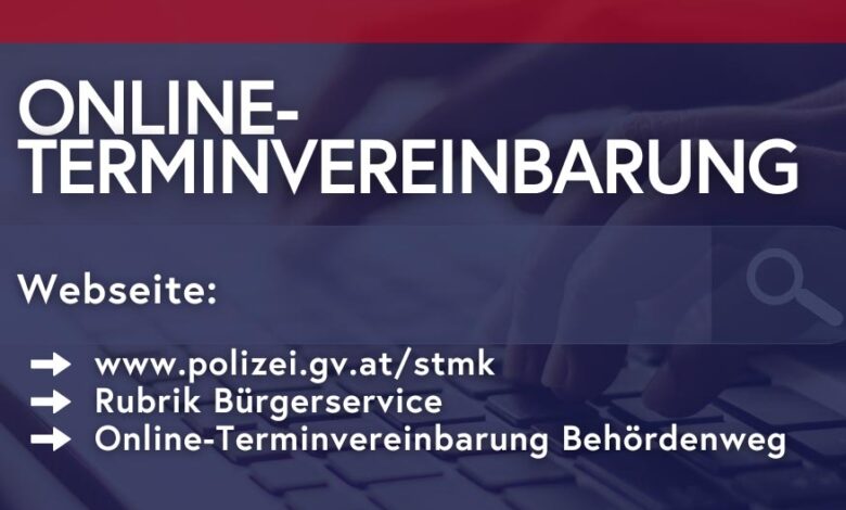 Steiermark, Graz. – Ab sofort steht der Grazer Bevölkerung eine „Online-Terminreservierung“ für diverse behördliche Belange zur Verfügung. Der Link dazu ist ab sofort auf der Homepage der Polizei www.polizei.gv.at unter der Rubrik Bürgerservice, oder wie unten angeführt direkt abrufbar.