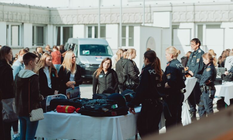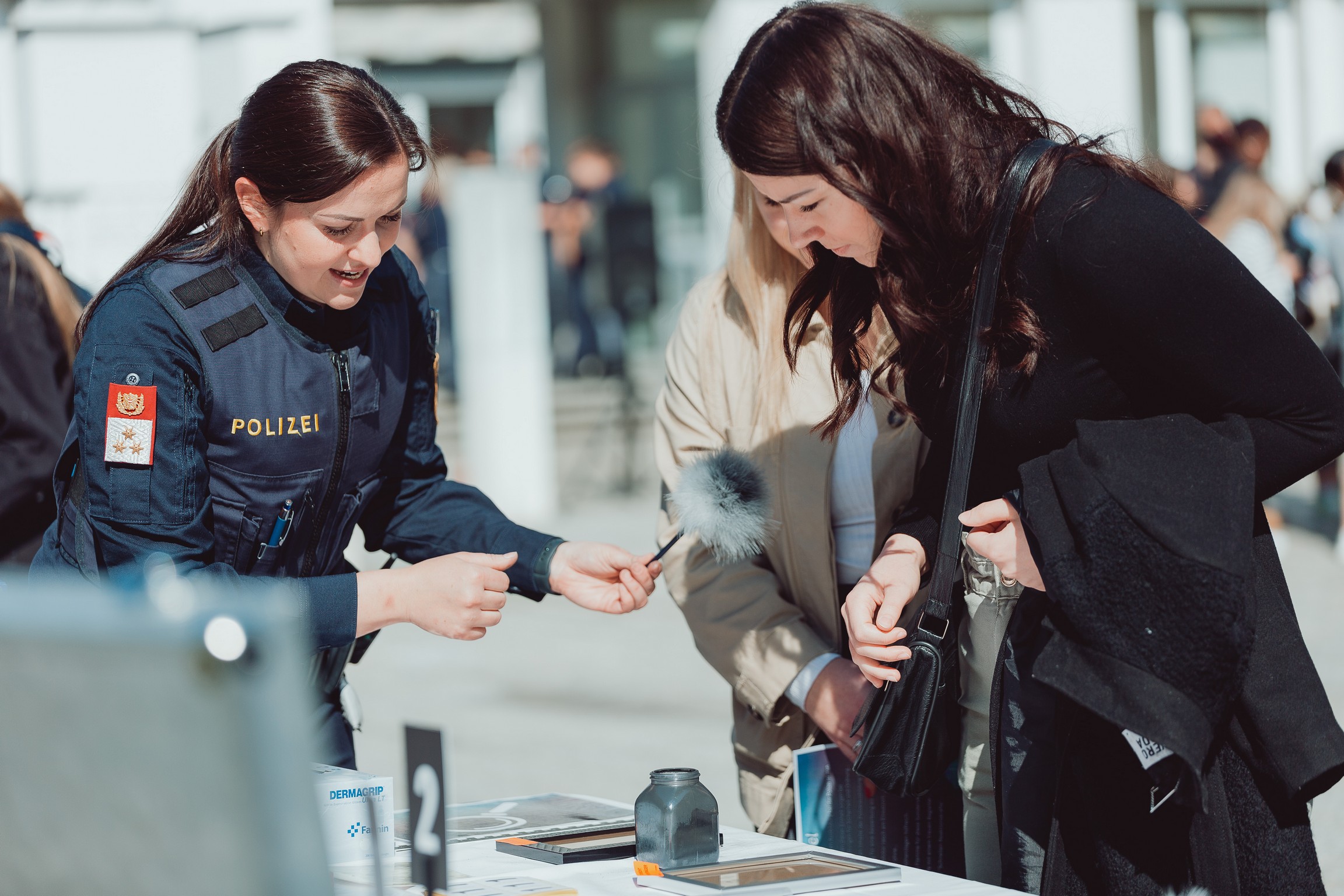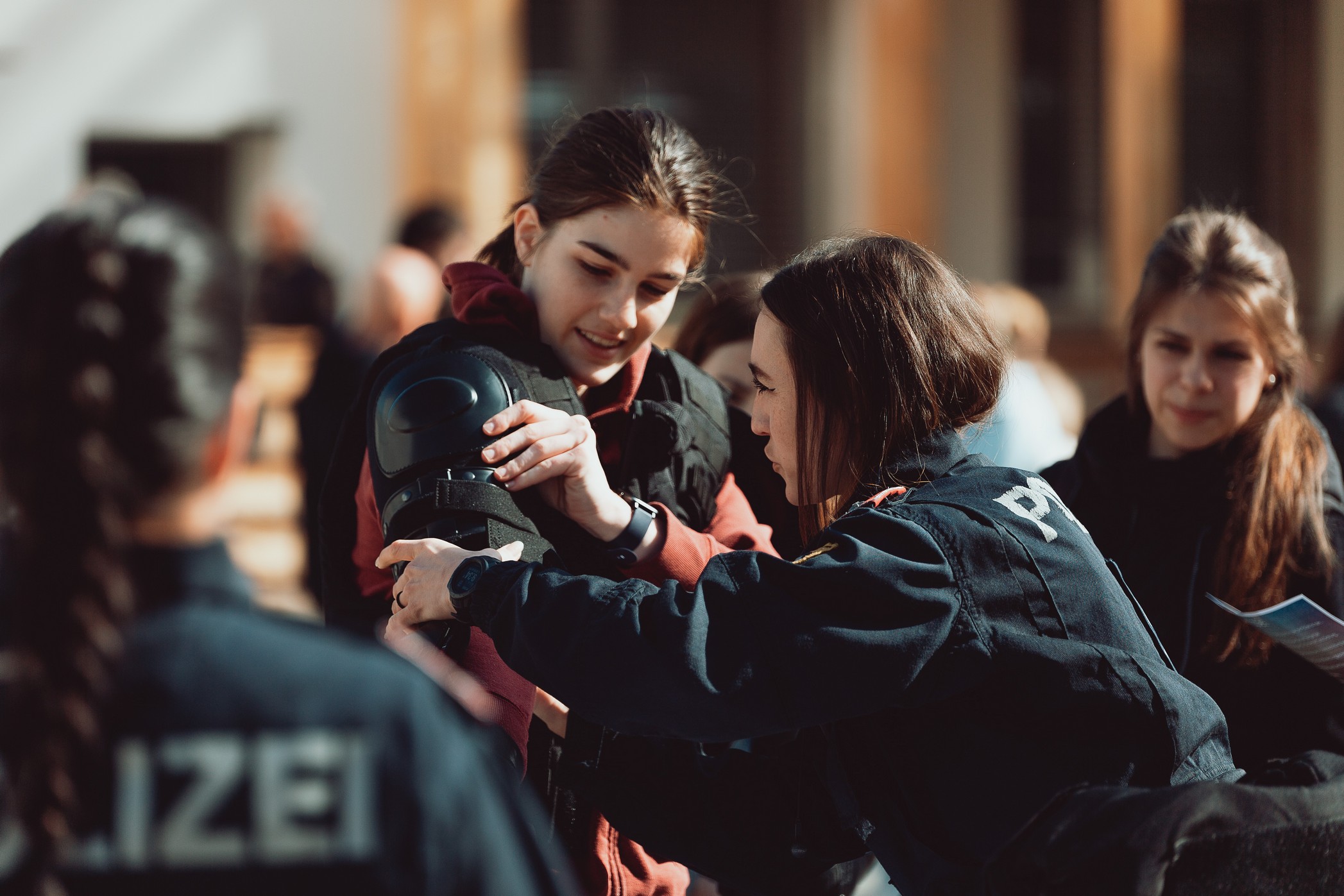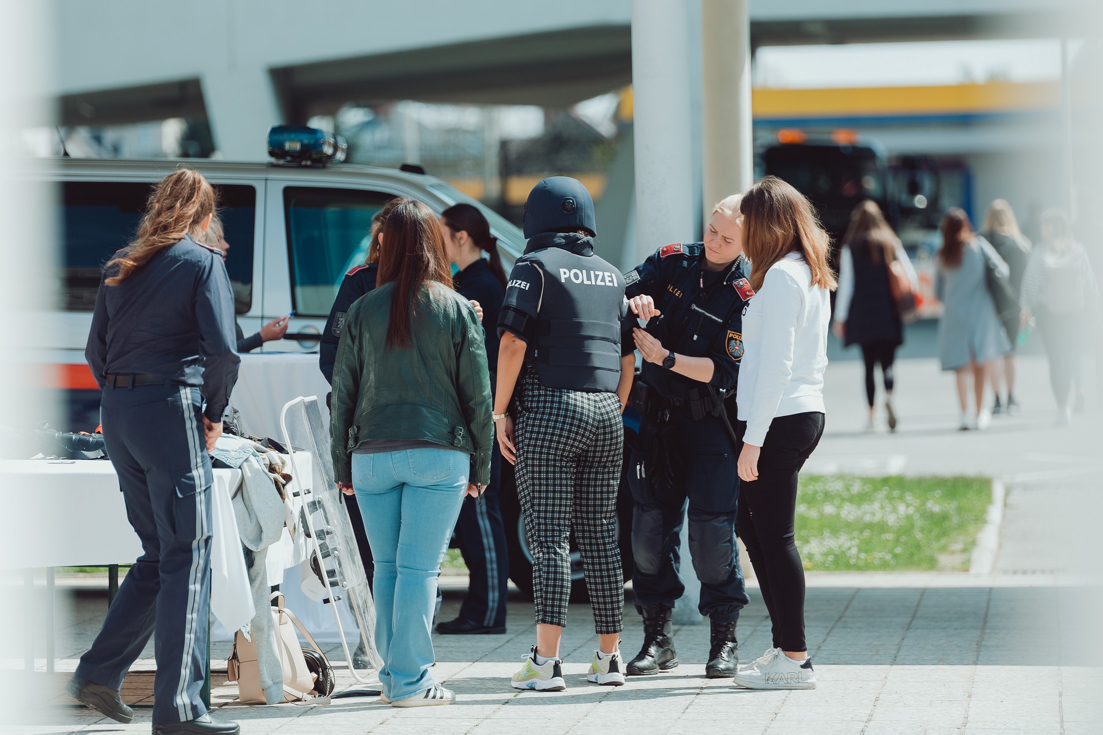 Die Mädchen wurden von erfahrenen Polizistinnen und Polizisten begrüßt, die ihnen einen Einblick in den spannenden und abwechslungsreichen Alltag von Polizeibeamtinnen und Polizeibeamten gaben. Dabei wurden sowohl die theoretischen als auch praktischen Aspekte des Polizeiberufs vorgestellt. Unter anderem waren Polizistinnen der Bereitschaftseinheit, der Einsatzeinheit, des Sanitätsdienstes, der Spurensicherung und eine Bezirksbrandermittlerin vor Ort und beantworteten die Fragen der interessierten Damen.