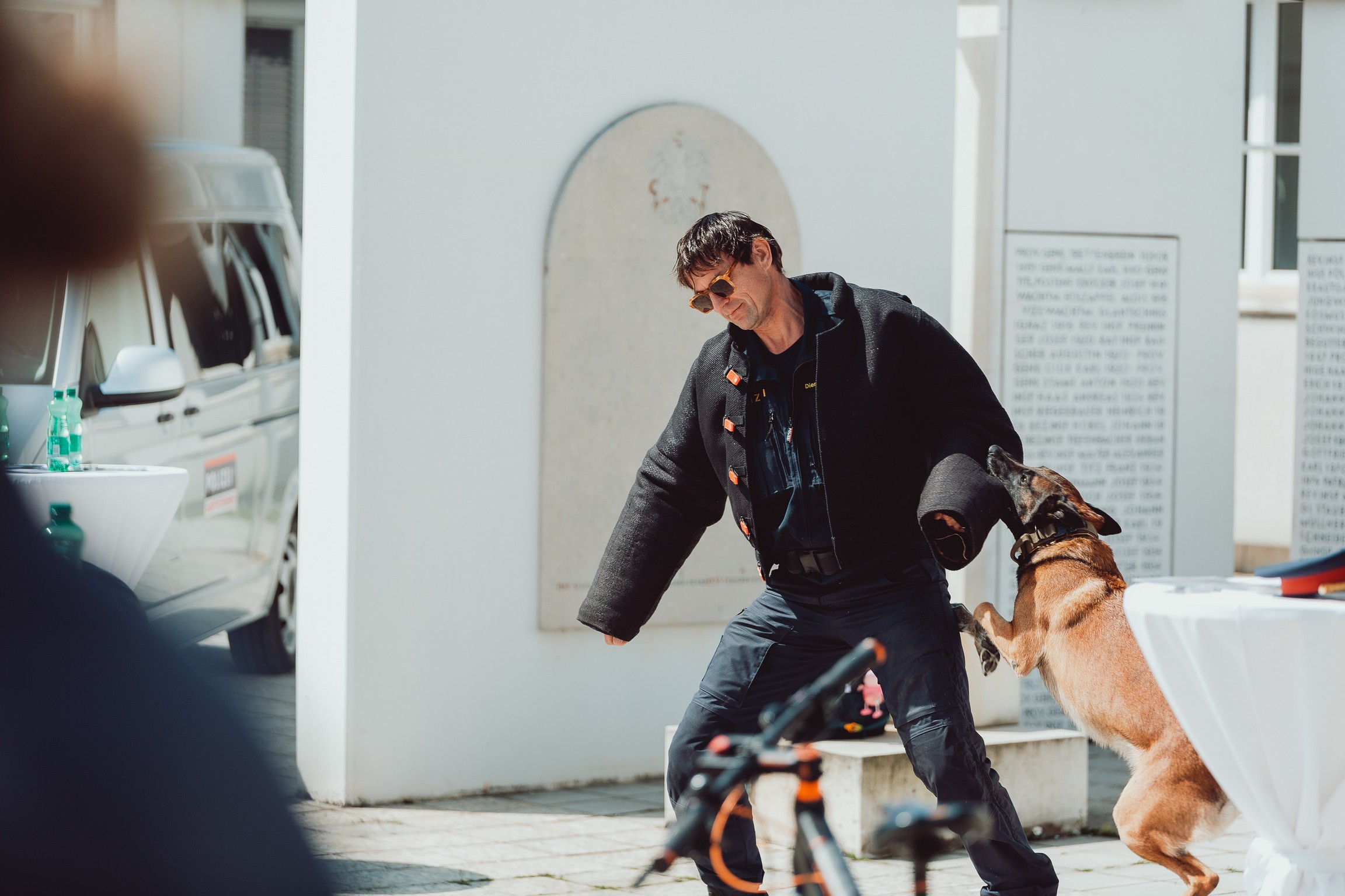Die Teilnehmerinnen hatten außerdem die Möglichkeit, bei einem Einsatztraining im Turnsaal des Bildungszentrums dabei zu sein, bekamen eine Vorführung von einer Polizeidiensthundeführerin und ihrem Diensthund und lernten spielerisch die verschiedenen Bereiche der Polizei kennen.
