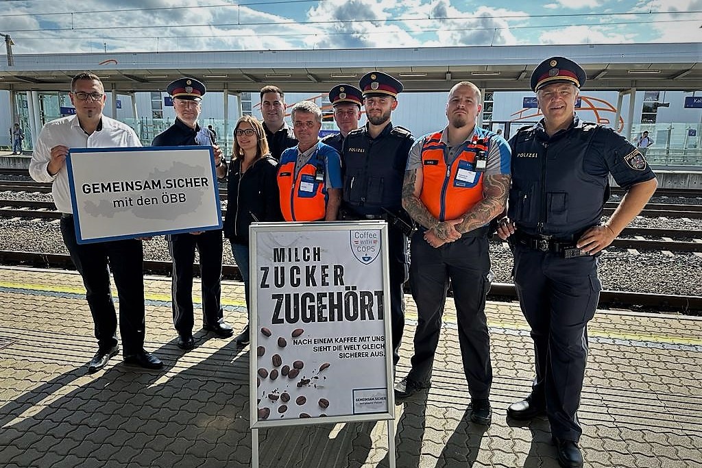 Steiermark.- Am Dienstag, 25. Juli 2023, wurden steirische Bahnhöfe zu den Standorten des Auftaktes der neuen österreichweiten Aktion „Coffee with Cops“, die im Rahmen der Initiative GEMEINSAM.SICHER mit unserer Polizei den modernen Ansatz des Community-Policings verfolgen soll.