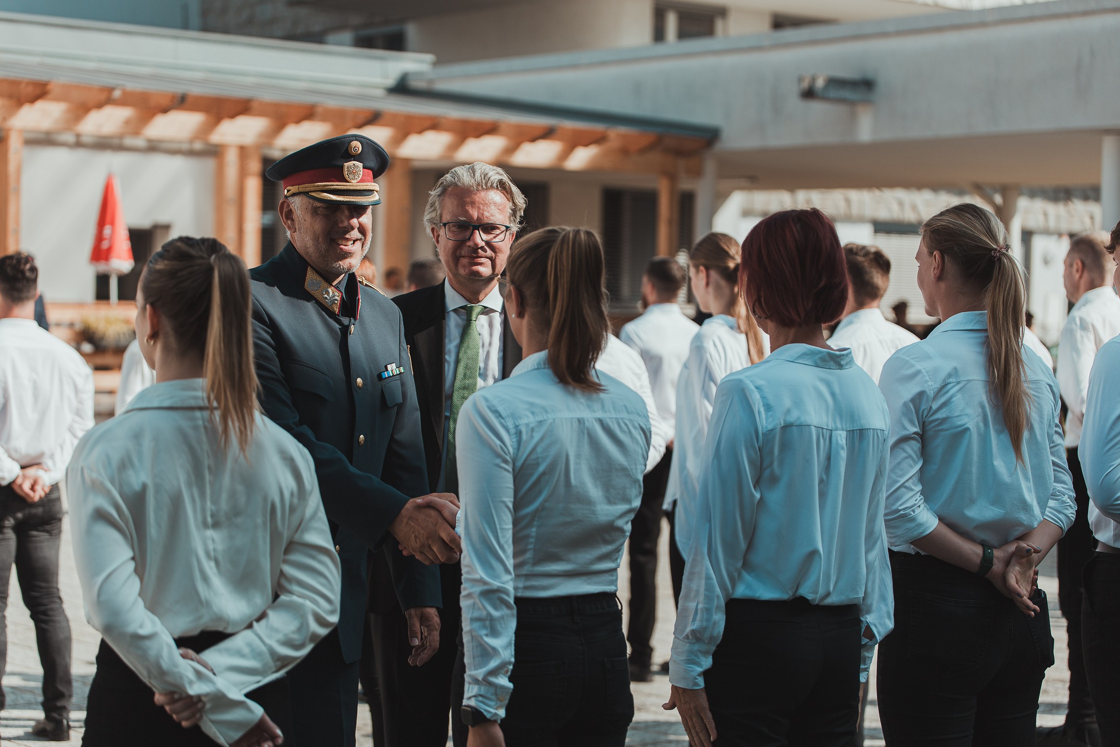 „Mit der heutigen feierlichen Amtseinführung und Ihrem geleisteten Eid knüpfen Sie ein bedeutendes Band zur Republik Österreich. Es ist mir eine große Freude, Sie herzlich bei der steirischen Polizei willkommen zu heißen. Sie befinden sich am Anfang einer vielversprechenden beruflichen Reise. Ergreifen Sie die Gelegenheit und nutzen Sie die vielfältigen Möglichkeiten, die Ihnen im Bildungszentrum Graz zur Verfügung stehen. Danke, dass Sie sich dafür entschieden haben, diesen wertvollen Beruf zu ergreifen“, so Landespolizeidirektor-Stellvertreter Joachim Huber zu den angehenden Polizistinnen und Polizisten.