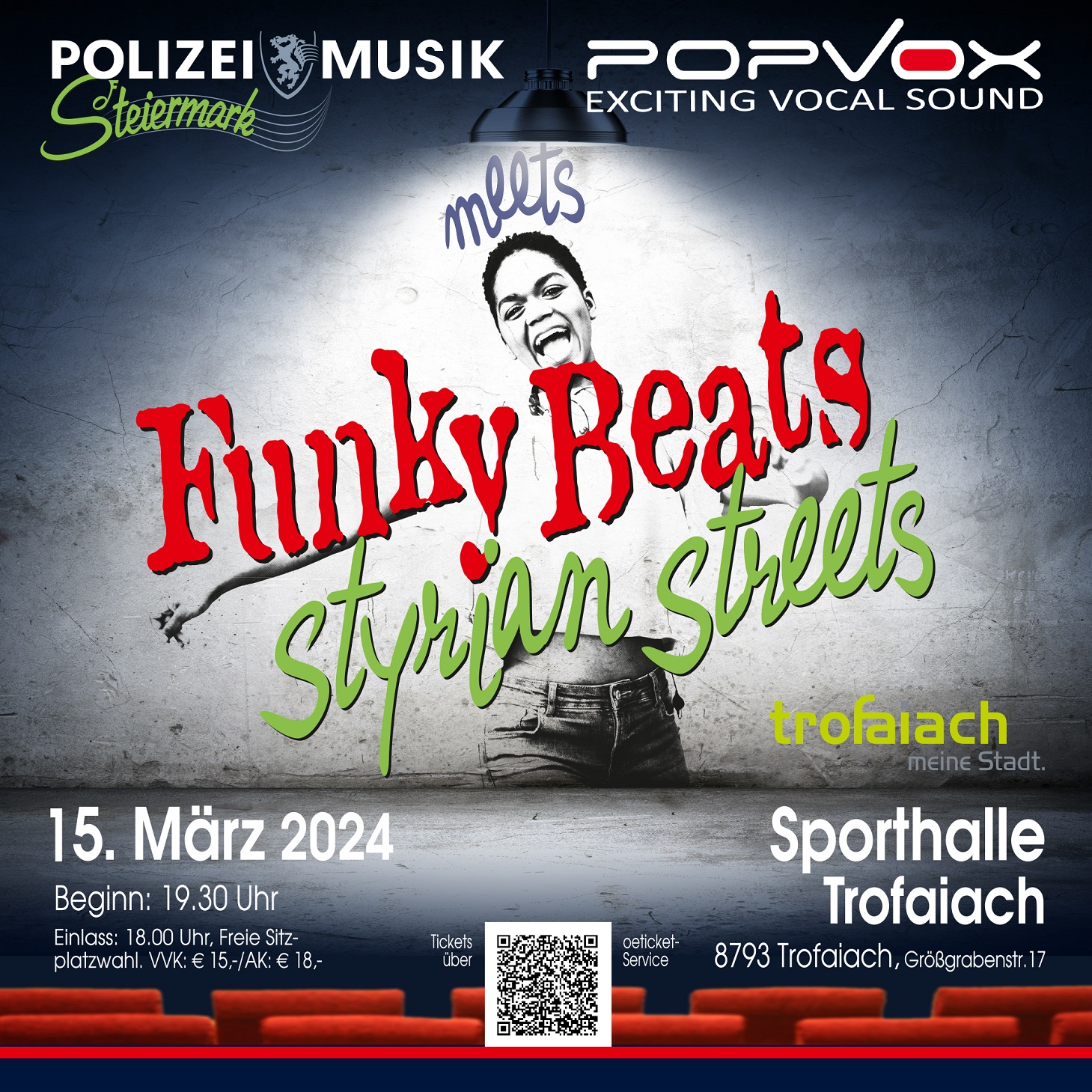Trofaiach/Graz/Pischelsdorf. – Nach monatelangen Vorbereitungen eröffnen Polizeimusik Steiermark und POPVOX ihre gemeinsame Konzertreihe quer durchs Land. Gestartet wird morgen Freitag, 15. März 2024, in Trofaiach. Es folgen Konzerte im Grazer Congress (21. März 2024) sowie im oststeirischen Pischelsdorf (12. April 2024). Mit im Gepäck: Eine Weltpremiere der besonderen Art.