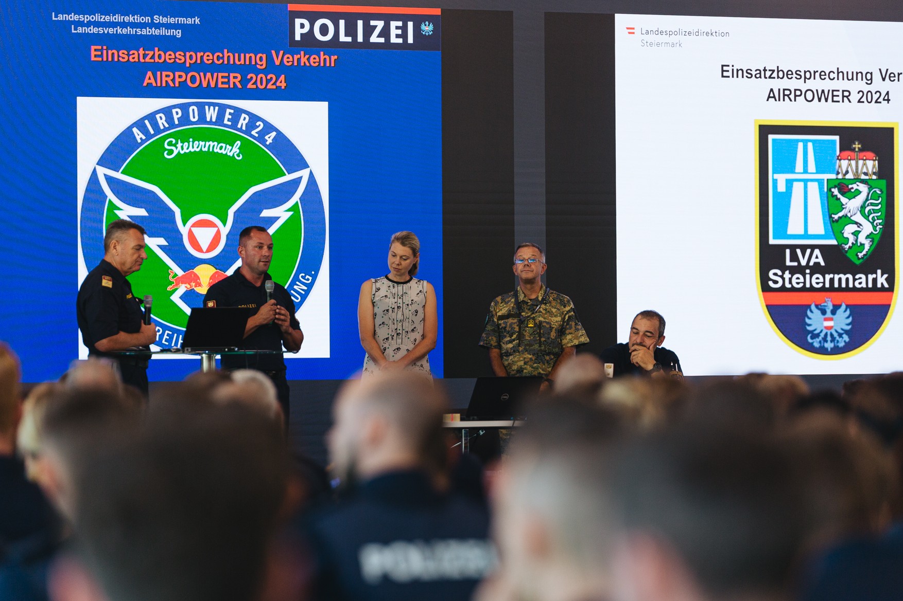 Zeltweg, Bezirk Murtal. – Mit einer groß angelegten Einsatzbesprechung am Red Bull Ring stellten sich am gestrigen Dienstag, 3. September 2024, rund 270 Polizistinnen und Polizisten des „Einsatzabschnitts Verkehr“ auf die diesjährige AIRPOWER24 ein. Mit im Cockpit: Zwei Ehrungen und ein neues Verkehrskonzept.