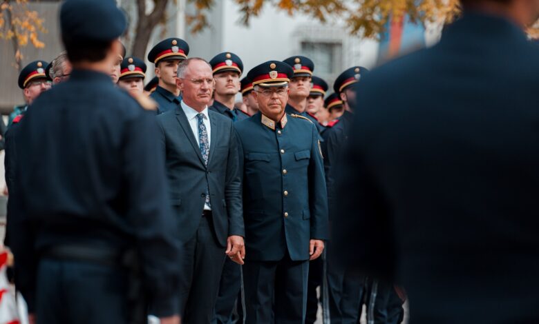 Neben den 56 „Neueinsteigern“ standen heute jedoch auch ebenso viele Damen und Herren im Fokus, die ihre zweijährige Grundausbildung nun bereits erfolgreich abgeschlossen haben. Die 22 Frauen und 34 Männer wurden im Rahmen des Festaktes feierlich ausgemustert. Nach einer umfassenden Theorieausbildung samt Praxisinhalten geht es für sie nun als zukünftige Inspektorinnen und Inspektoren in den exekutiven Außendienst. Dabei kommen sie in unterschiedlichen steirischen Bezirken und in verschiedenen Dienststellen der Steiermark zum Einsatz. Neben der Polizeimusik Steiermark, zahlreichen Angehörigen und Interessierten am Polizeiberuf waren auch Innenminister Gerhard Karner, Landeshauptmann Christopher Drexler und Landespolizeidirektor-Stv. Alexander Gaisch als Gratulanten beim Festakt am Grazer Karmeliterplatz anwesend.