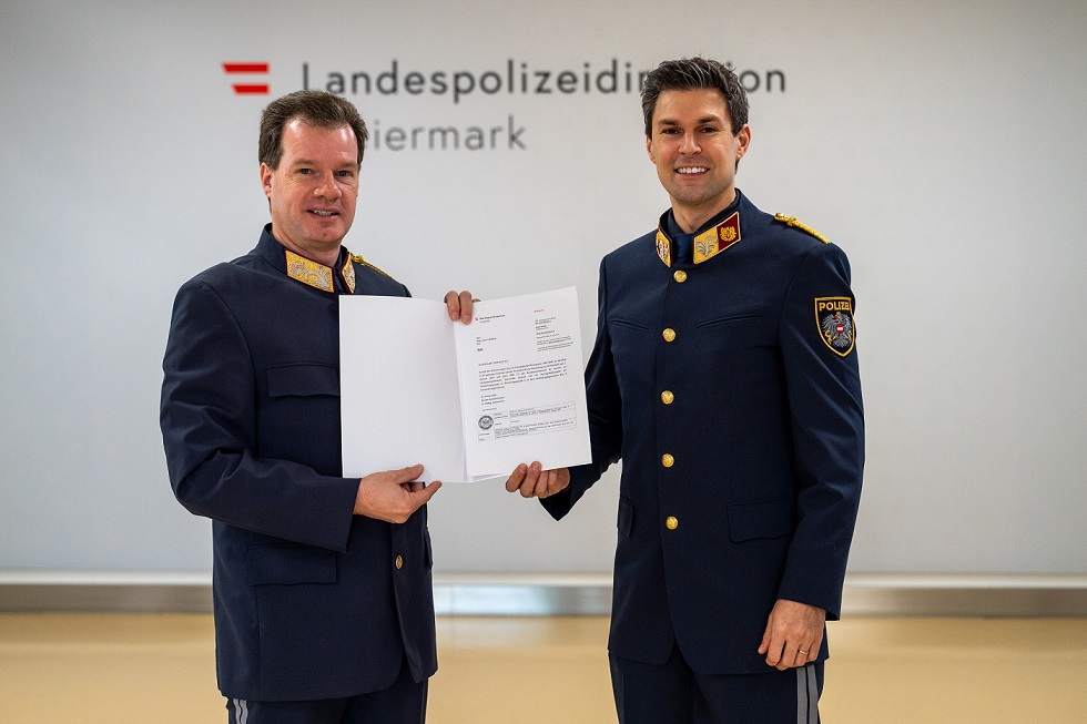 Für Mag.iur. Louis Verdier beginnt ein neuer beruflicher Abschnitt. Der Jurist trat 2014 seinen Dienst im Bundesministerium für Inneres an, wo er als wissenschaftlicher Mitarbeiter des Rechtsschutzbeauftragten tätig war. Bald darauf wurde er mit der Leitung des Rechtsbüros im damaligen Bundesamt für Verfassungsschutz und Terrorismusbekämpfung beauftragt. 2020 übernahm er die Leitung der zentralen Geldwäschemeldestelle im Bundeskriminalamt und übte seit 2021 zusätzlich die Funktion als stellvertretender Leiter der Abteilung für Wirtschaftskriminalität aus. Nun fasst er beruflich Fuß in der Steiermark und widmet sich als stellvertretender Leiter und Hauptreferent im Büro für Rechtsangelegenheiten nun den juristischen Agenden der Landespolizeidirektion.