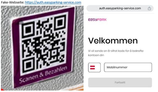 Die Betrüger bringen an öffentlichen Parkscheinautomaten Aufkleber mit einem QR-Code (Hinweis Scannen und Bezahlen) an. Scannt man diesen QR-Code, gelangt man auf eine Fake-Webseite der Betrüger. Die Opfer erkennen diese gefälschten Webseite nicht und geben ihre persönliche Daten bekannt. Es kommt schließlich zum finalen Betrug.