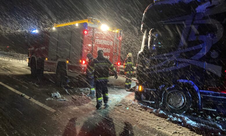 Gegen 04.45 Uhr blieb das slowakische Sattelzugfahrzeug auf der schneeglatten Fahrbahn der A2-Südautobahn bei Schäffern hängen. In der Folge geriet der Lkw ins Rutschen und blockierte beide Fahrstreifen in Richtung Wien. Auch weitere Schwerfahrzeuge waren im Wechselgebiet zwischen Schäffern und Zöbern hängengeblieben. Einsatzkräfte der Feuerwehr Pinggau rückten schließlich für die Fahrzeugbergung aus. Bereits um 05.45 Uhr war ein Fahrsteifen wieder frei. Nachdem Einsatzkräfte der Feuerwehr bei der Bergung behilflich waren, konnte gegen 06.30 Uhr auch der zweite Fahrstreifen wieder für den Verkehr freigegeben werden. Es hatte sich zwischenzeitlich ein Stau von etwa zehn Kilometern gebildet.